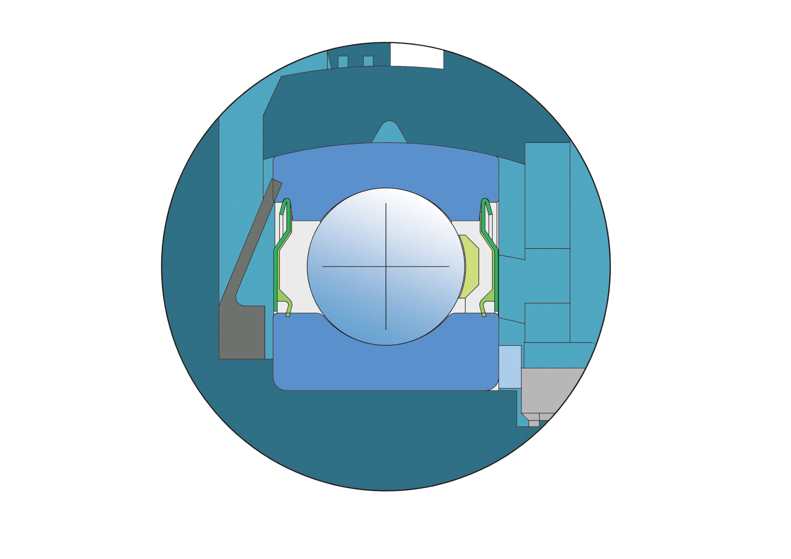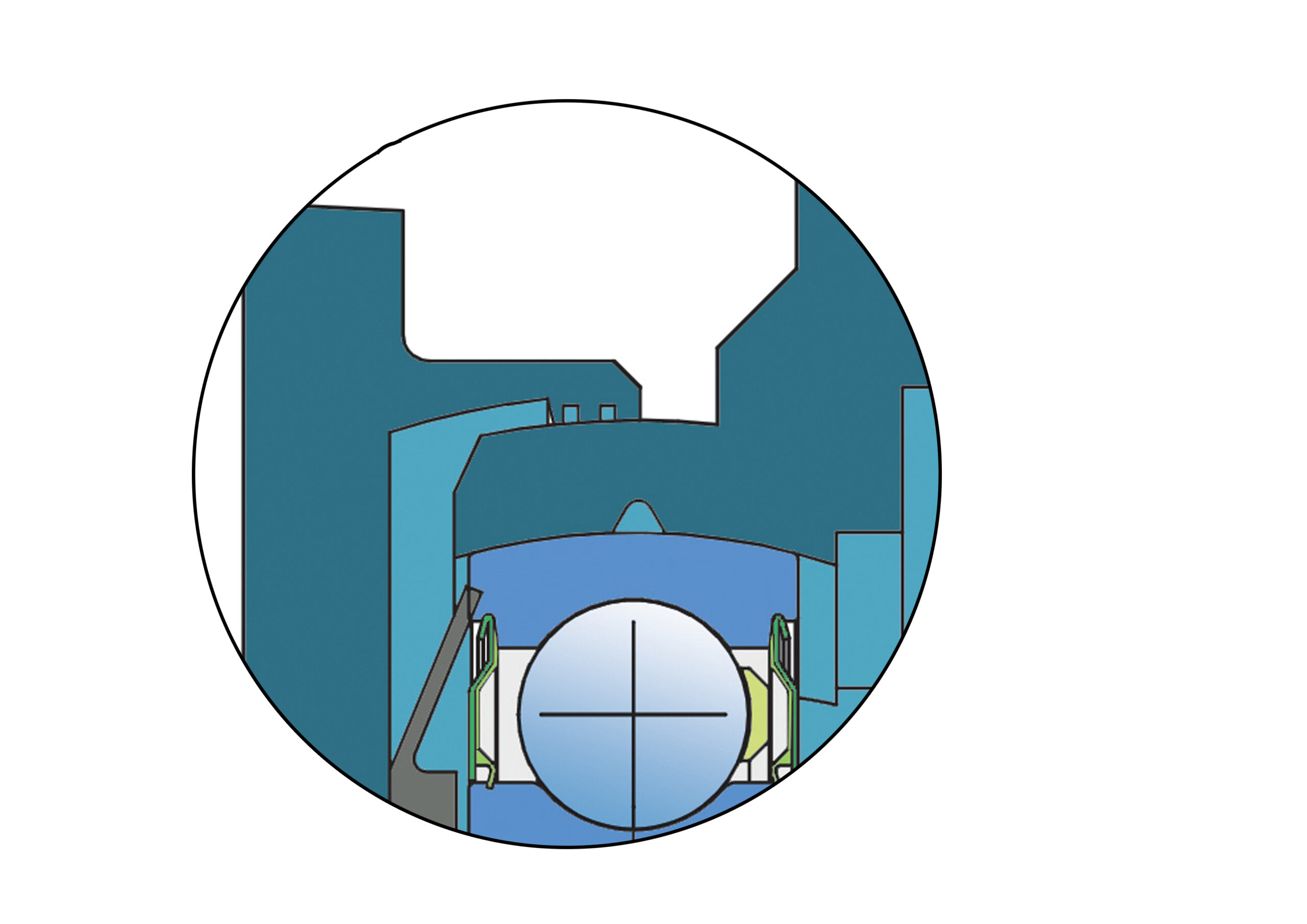 - Применение уплотнительного резинового кольца, уплотнения 2S и заполнение всех пустот внутри опоры смазкой, полностью предотвращают проникновение крупных и мелких частиц пыли и грязи внутрь подшипника;